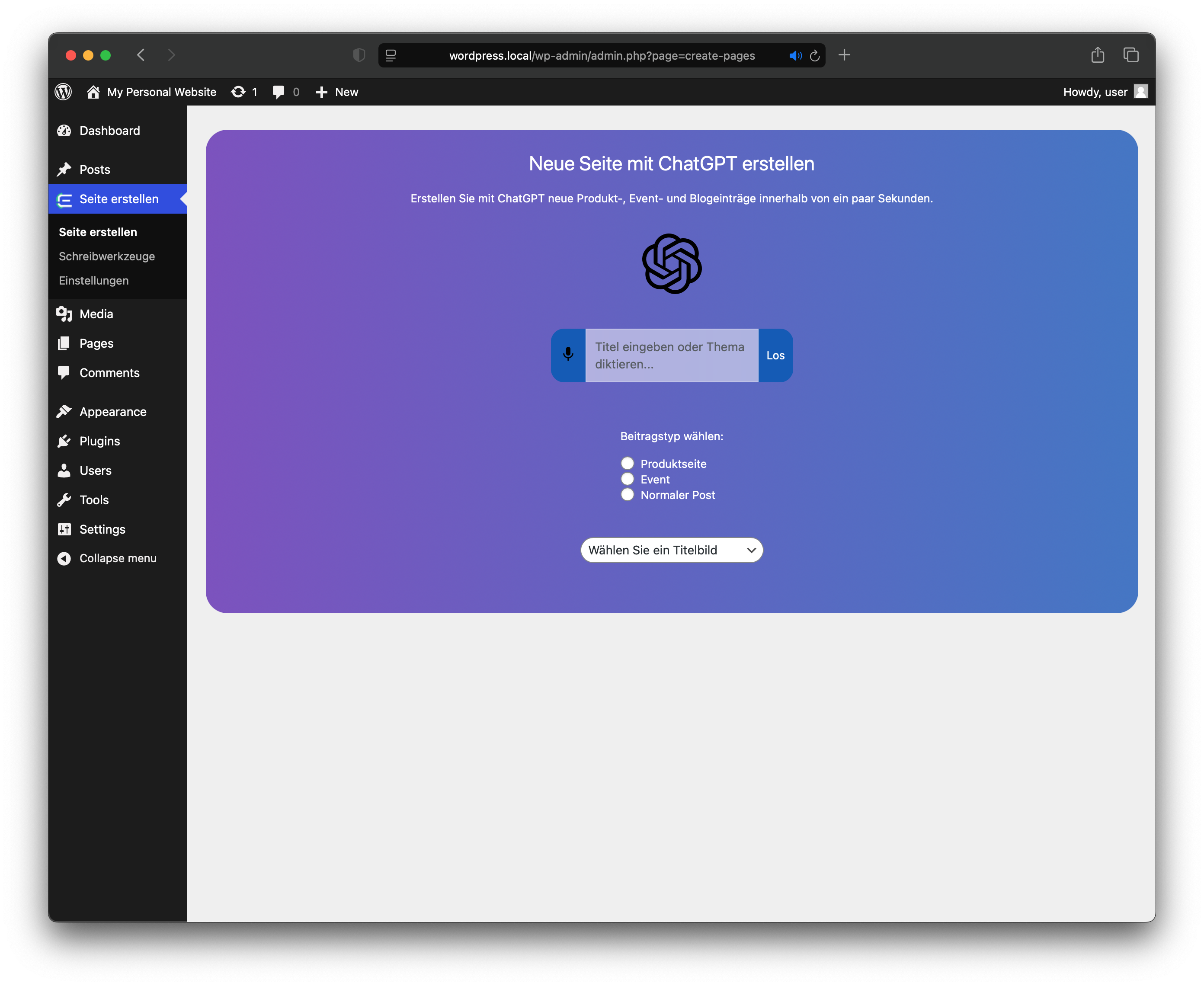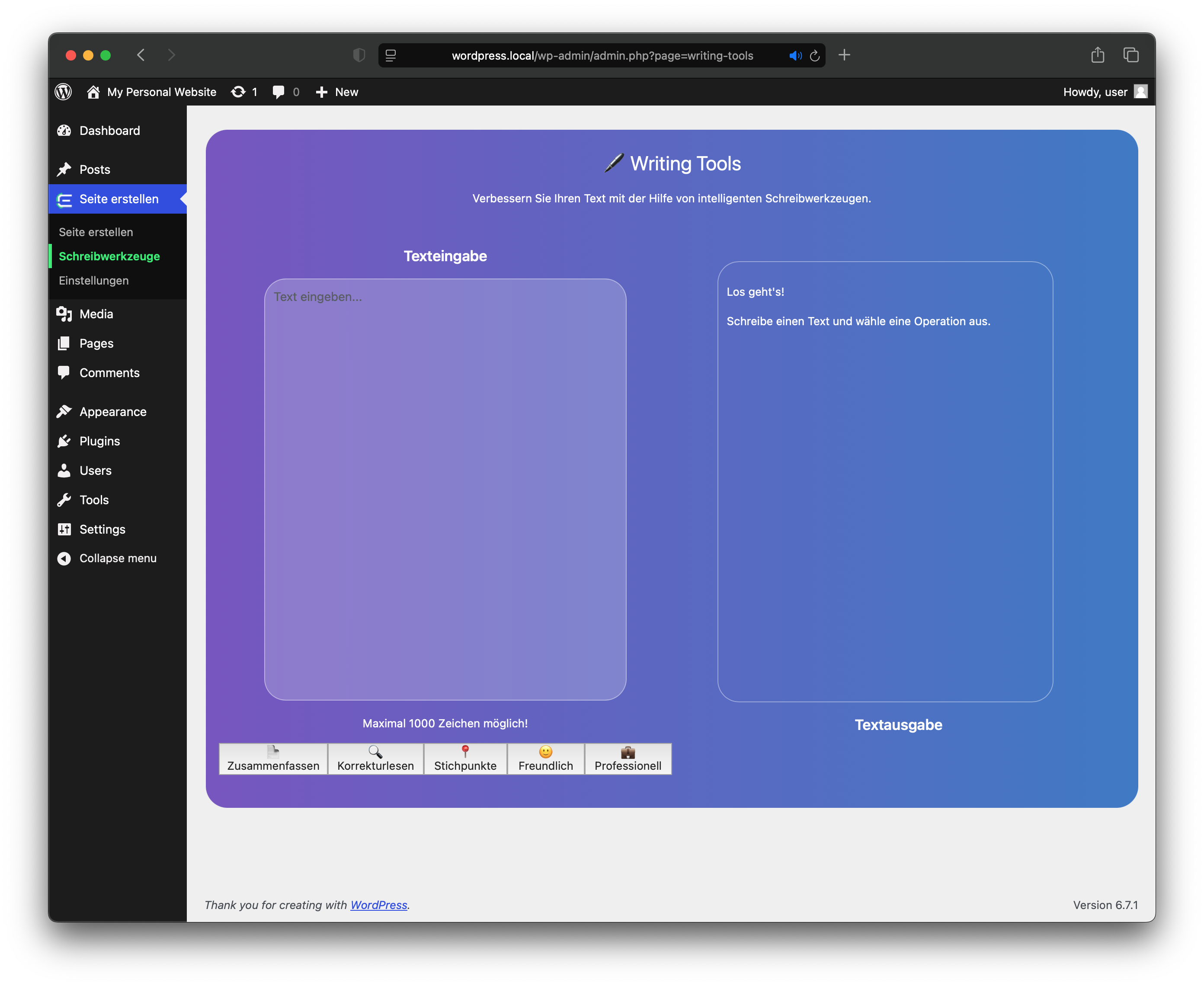 After pressing the ’+ Create structure’ button on the main screen, you’ll find yourself on the Creator screen. On this screen, you have the following options: